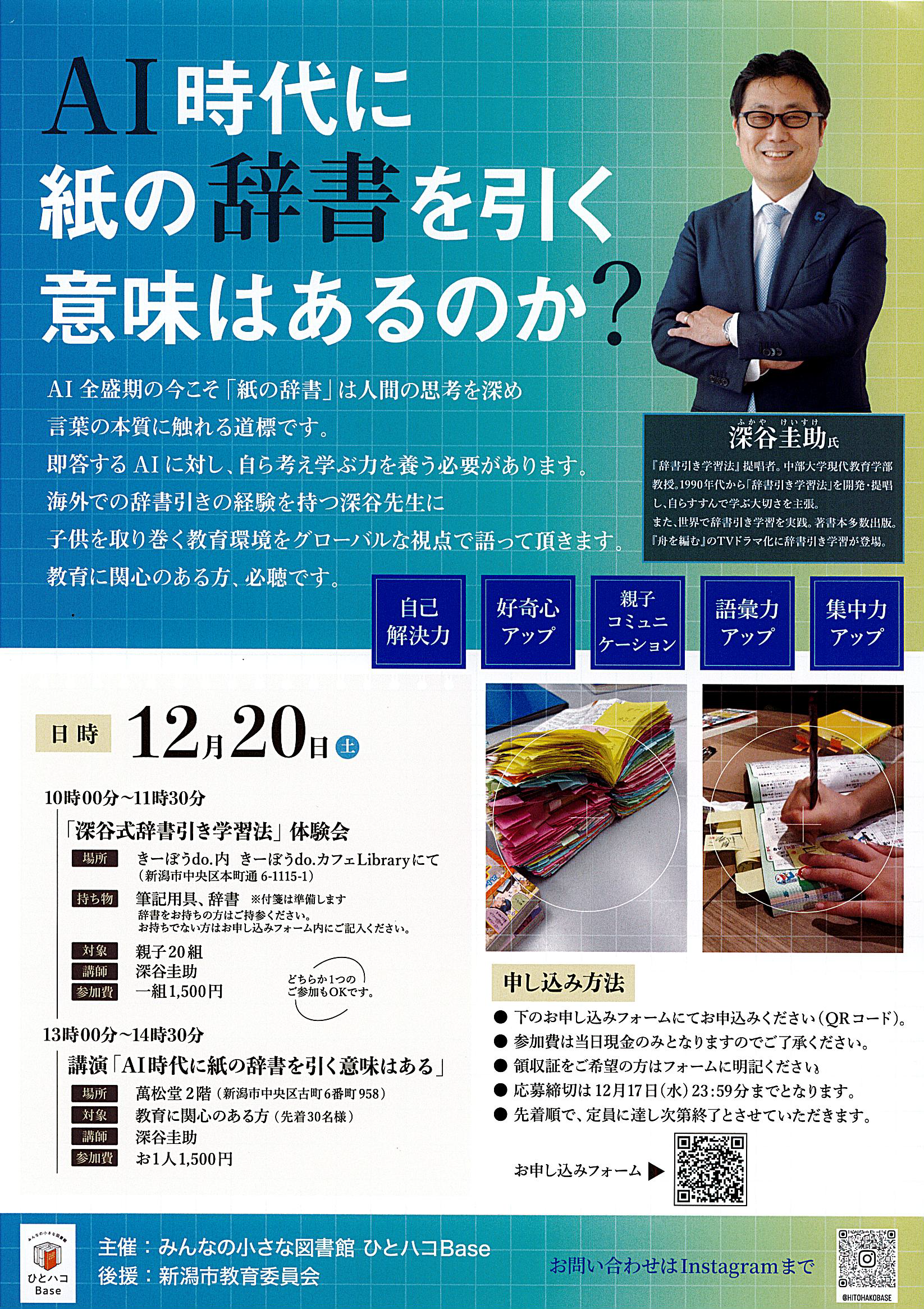 辞書引き学習法 深谷圭助さん講演会開催致します